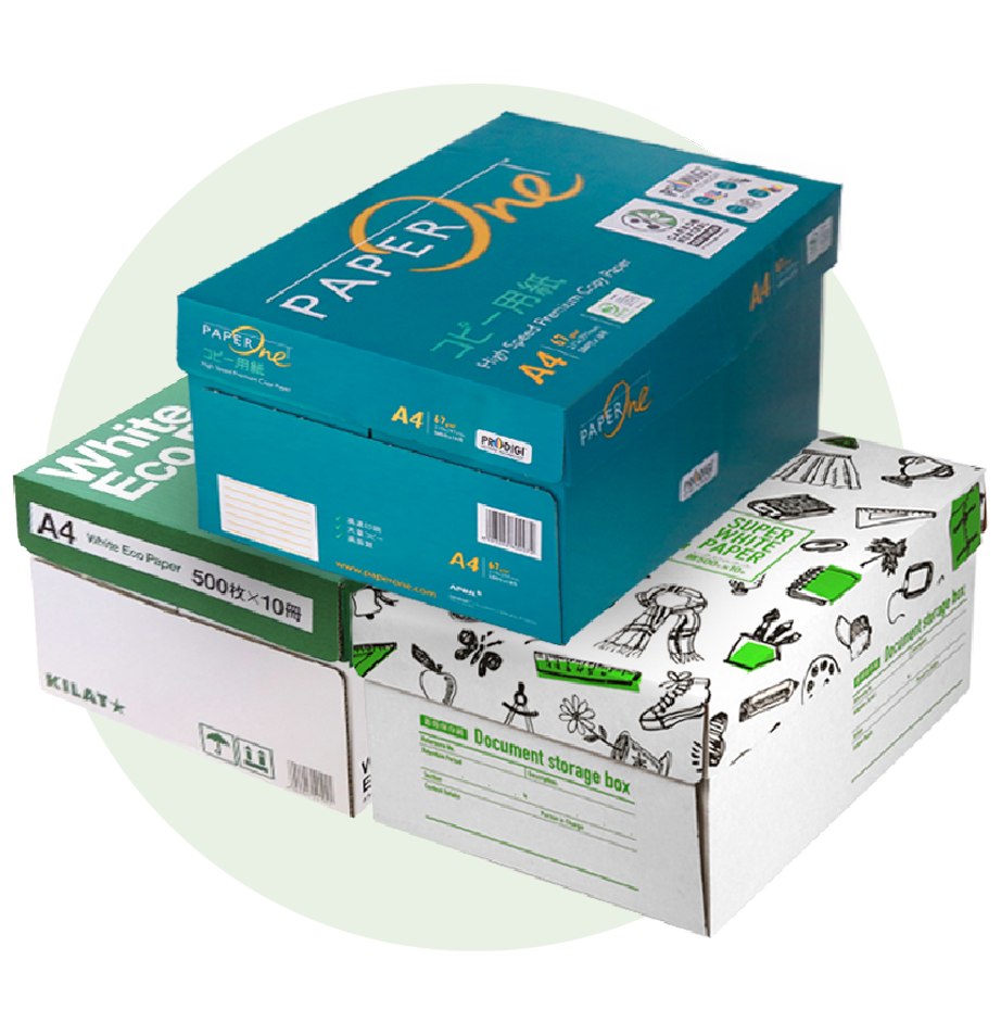 当社で多く輸入販売している「ペーパーワン」は日本で唯一の「カーボンニュートラル認証(※1)されたコピー用紙」間接的ではありますが、脱炭素社会の実現に貢献したいと考えています。また、当社オリジナル商品「スーパーホワイトペーパー」や「ホワイトエコペーパー」はGPN(※2)掲載商品。