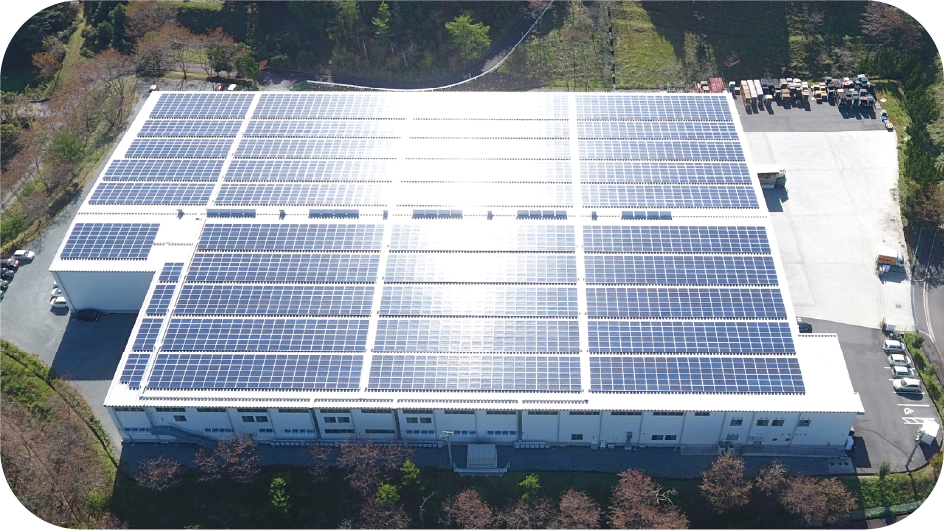 当社では、市川ロジスティクスセンターの屋根全体に太陽光パネル(メガソーラー)を設置し、2016年8月より太陽光発電事業を開始致しました。太陽光発電は、地球温暖化の主な原因とされているCO2を排出しない環境に優しい発電方法です。